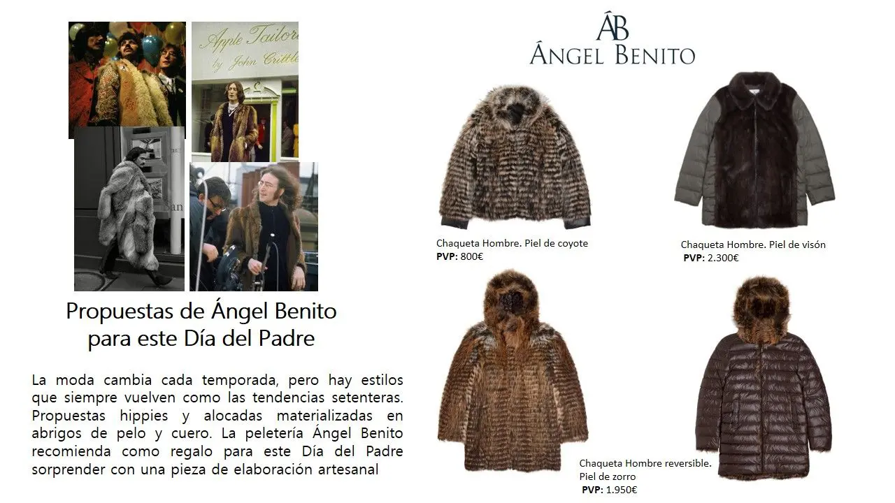 La moda cambia cada temporada, pero hay estilos que siempre vuelven como las tendencias setenteras. Propuestas hippies y alocadas materializadas en abrigos de pelo y cuero. La peletería Ángel Benito recomienda como regalo para este Día del Padre sorprender con una pieza de elaboración artesanal