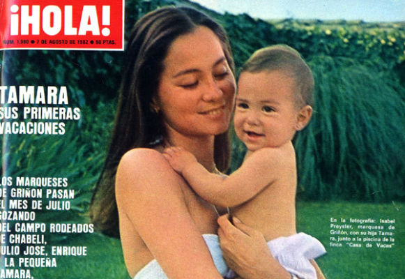 «En la fotografía: Isabel Preysler, marquesa de Griñón, con su hija Tamara junto a la piscina de la finca: ‘Casa de Vacas'», reza la leyenda de la capa. Precisamente en esta ingente finca es donde Tamara ubica sus primeros recuerdos, o al menos eso comentó en su última entrevista en televisión junto a Bertín Osborne.