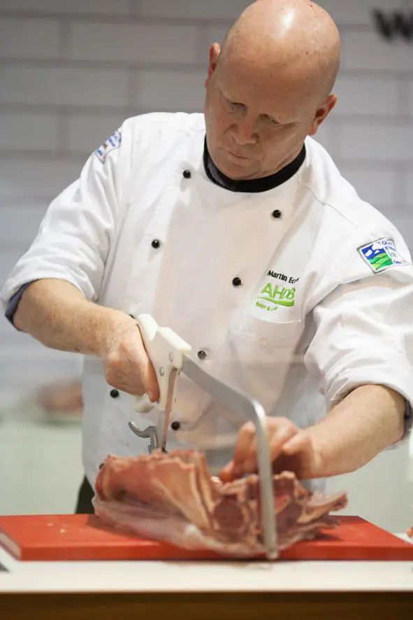 Las demostraciones de carnicería incluirán diversos filetes de vacuno con hueso, como la chuleta Porterhouse, chuleta de lomo, chuleta de solomillo y medallones de lomo. Además se mostrarán cortes de la pierna de cordero como los filetes Premium, escalopes de babilla y brochetas corte Noisette, así como 3 cortes de cadera de vacuno (filete Bistro, filete Prime y filete de Picaña) y de la aguja, el filete Flat Iron.
