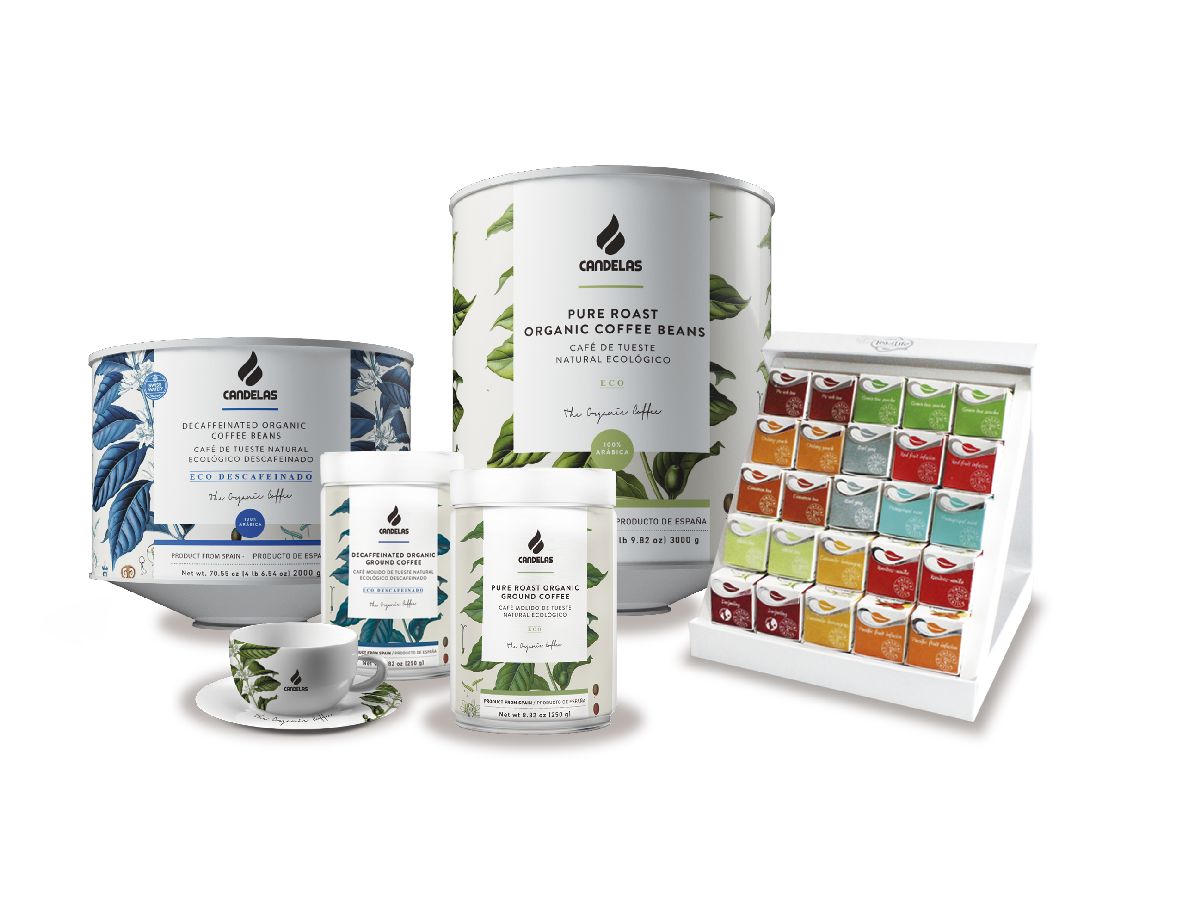 Candelas relanza en esta feria su gama The Organic Coffee, compuesta por café ecológico en grano, molido, en cápsulas; azúcar ecológico y la exclusiva línea de tés e infusiones Tea Of Life, con certificación 100% orgánica y de comercio justo.