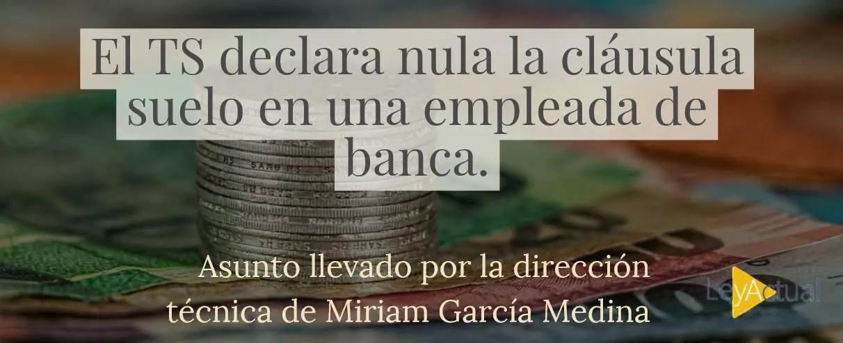 El Tribunal Supremo, tras estimar el recurso de casación interpuesto bajo la dirección técnica de la abogada especializada en Derecho Bancario Miriam García Medina, ha declarado nula la conocida como ‘cláusula suelo’ en el caso de un empleado de banca. Se sienta jurisprudencia, por tanto, en el caso de este tipo de empleados, que son considerados a todos los efectos como consumidores.