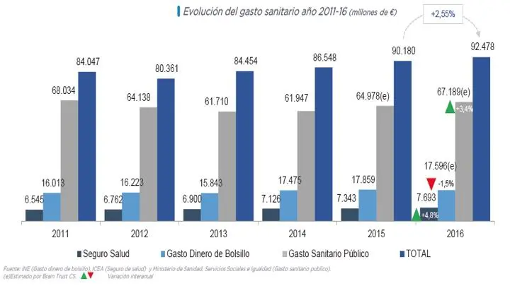 El gasto en seguros de salud es la partida de gastos relacionados con la salud que ha tenido mayor incremento en los particulares. Este gasto ha crecido un 4,8% (datos consensuados de 2016), manifestando una tendencia continuista, según el Observatorio para el Seguimiento de la Competencia en el Ramo de la Salud elaborado por BRAINTRUST. El cambio en la tendencia de los indicadores socioeconómicos evidencia la recuperación económica y el ramo de los seguros de salud sale claramente favorecido, informa EKMB