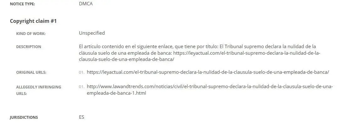 A pesar de ello muchas empresas siguen viendo cómo otras de la competencia plagian su contenido. Ante esta situación, y según Tovar, no hay que alarmarse. “En Ley Actual hemos sufrido situaciones similares. De hecho, en las últimas semanas Ley Actual se ha visto en la obligación de tomar medidas frente a un plagio realizado por una empresa que utiliza una forma de posicionar la página muy agresivo y contrario a la normativa. En nuestra empresa decidimos desde un inicio definir un procedimiento de actuación muy concreto y transparente para defender el derecho de nuestros asociados que son los que tienen interés en que sus publicaciones no se vean penalizadas por la mala actuación de otras empresas. Este procedimiento, de hecho, es de libre consulta en Ley Actual”.