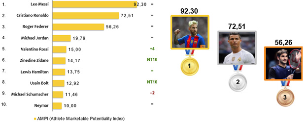 Por lo que respecta a los deportistas internacionales, aquí sí mandan los futbolistas, sobre todo los que, en estos momentos, se disputan ser el mejor del mundo. Y eso, lógicamente, tiene su impacto en la imagen.