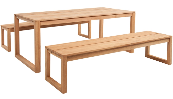 Este conjunto está compuesto por una mesa larga y dos bancos también alargados para estar en armonía con la mesa de madera de teca. La madera de teca tiene una calidad fascinante, por lo que este conjunto merendero te podrá durar muchísimo tiempo. Ideal para el exterior ya que es resistente a la intemperie, a la lluvia e incluso a la nieve. ¿Se puede pedir más?