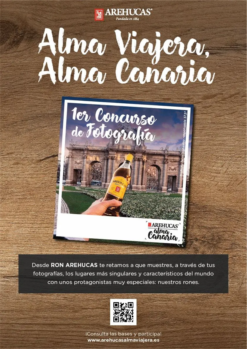 Por primera vez en su historia, Ron Arehucas lanza este mes de abril el “Concurso Nacional de fotografía Alma Viajera, Alma Canaria” a través del cual los seguidores de la marca podrán demostrar su creatividad y talento tomando como punto de partida de la fotografía sus rones Carta Oro o Carta Blanca.