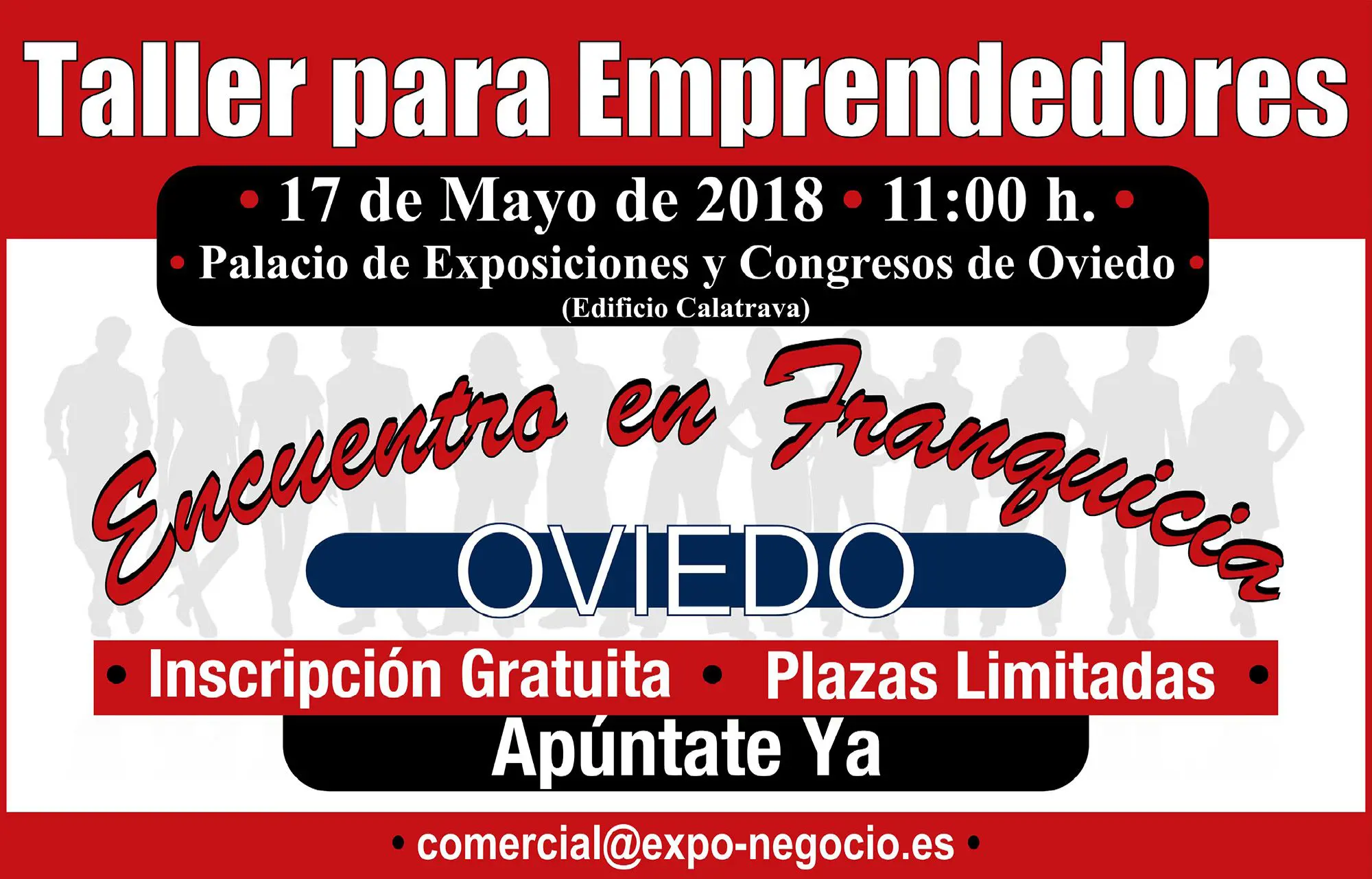 El jueves 17 de mayo de 2018 a las 11:00h y en el marco del VI Encuentro en Franquicia en Oviedo, tendrá lugar la celebración de este Taller para Emprendedores. La organización de este Taller correrá a cargo de la Asociación de Franquicias y Emprendedores del Principado de Asturias -AFyEPA-. Este Taller para Emprendedores se desarrollará en el Palacio de Exposiciones y Congresos de Oviedo