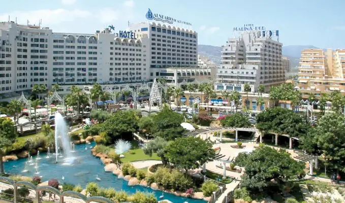 A golpe de ladrillazo, el complejo ocupa una superficie aproximada de 1,4 millones de metros cuadrados donde se distribuyen siete hoteles de tres, cuatro y cinco estrellas, apartamentos turísticos en alquiler, 80 locales comerciales, ocho parques de ocio, un centro médico y un balneario de agua marina.