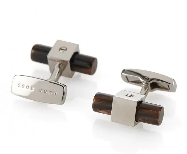 Cuerno: Un material elegante, sobrio, clásico para el hombre que desea llevar un toque rústico, pero imponente el día de su boda. Hugo Boss propone este diseño realizado en latón y cuerno marrón. Será el mejor gemelo para boda. PVP. 185€