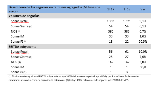 En el primer trimestre de 2018, el grupo aumentó el volumen de negocio consolidado un 8,7% (1.342 millones de euros) y la rentabilidad (ebitda) en un 9,5%. “Cabe destacar la contribución del comercio minorista alimentario y de Worten, con desempeños muy positivos en el crecimiento absoluto y también en las ventas en el mismo universo de tienda”, destacó Angelo Paupérico, su co-CEO.