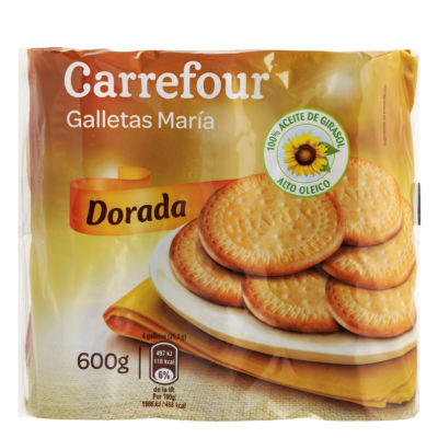 Si te gustan las galletas María, que son las de toda la vida, para darle de merendar a los niños, las de Carrefour son muy recomendables. Tienen un sabor bastante suave y son crujientes, nada que ver con las galletas que muchas veces pruebas y resulta que son blandas.