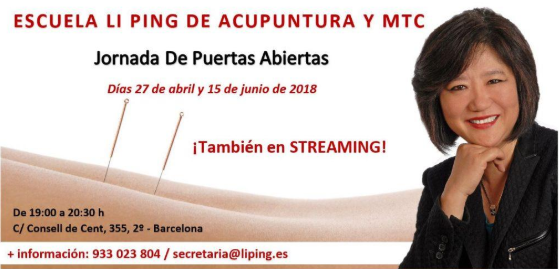 La Escuela Li Ping de Acupuntura y MTC invita a la Jornada de Puertas abiertas que celebrará el próximo día 15 de junio. Horario: de 19.00 a 20.30h. Lugar (Escuela): Calle Consell de Cent, 355, 2º – Barcelona. Para no perder la oportunidad, inscribirse aquí: https://escuelaliping.com/proxima-jornada-puertas-abiertas/