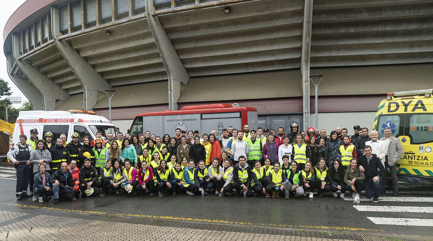 En ella han participado más de 150 profesionales: 70 enfermeras, así como personal y dotaciones del Cuerpo de Bomberos de Donostia-San Sebastián, Guardia Municipal de Donostia, DYA, Cruz Roja, Emergencias de Osakidetza, Agentes de Movilidad, Ertzaintza, Anoeta Kiroldegia, alumnos del grado medio de FP Técnico en Emergencias Sanitarias del Instituto Easo y personal de la Escuela Internacional de Ciencias de la Salud.