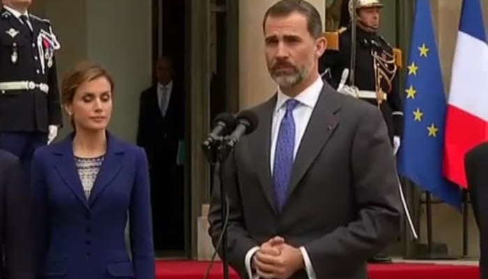 El rey improvisó un discurso de poco más de un minuto, en el que expresaba su actitud con Francia. La reina se mostraba aburrida al lado de su marido, que no quería escuchar el discurso, haciendo incluso algunos sonidos para que Felipe terminara de hablar. Uno de los momentos donde Letizia consiguió dejar fuera de juego al rey, que no sabía qué hacer.