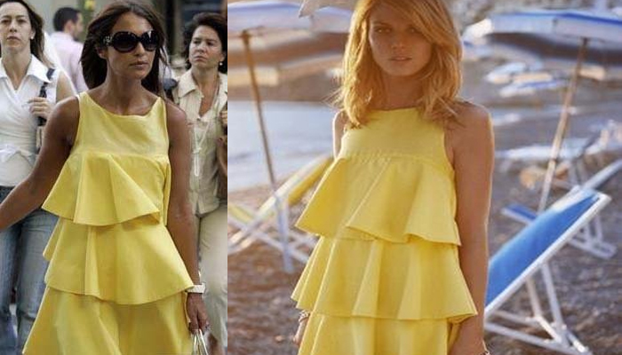 Una de las protagonistas de la primavera y en prendas de Zara es Paula Echevarria, que es fiel seguidora de la firma. El vestido de volantes amarillo se convirtió en una de las grandes tendencias de la temporada de verano de 2007, que se vio agotado en la gran mayoría de las tiendas.