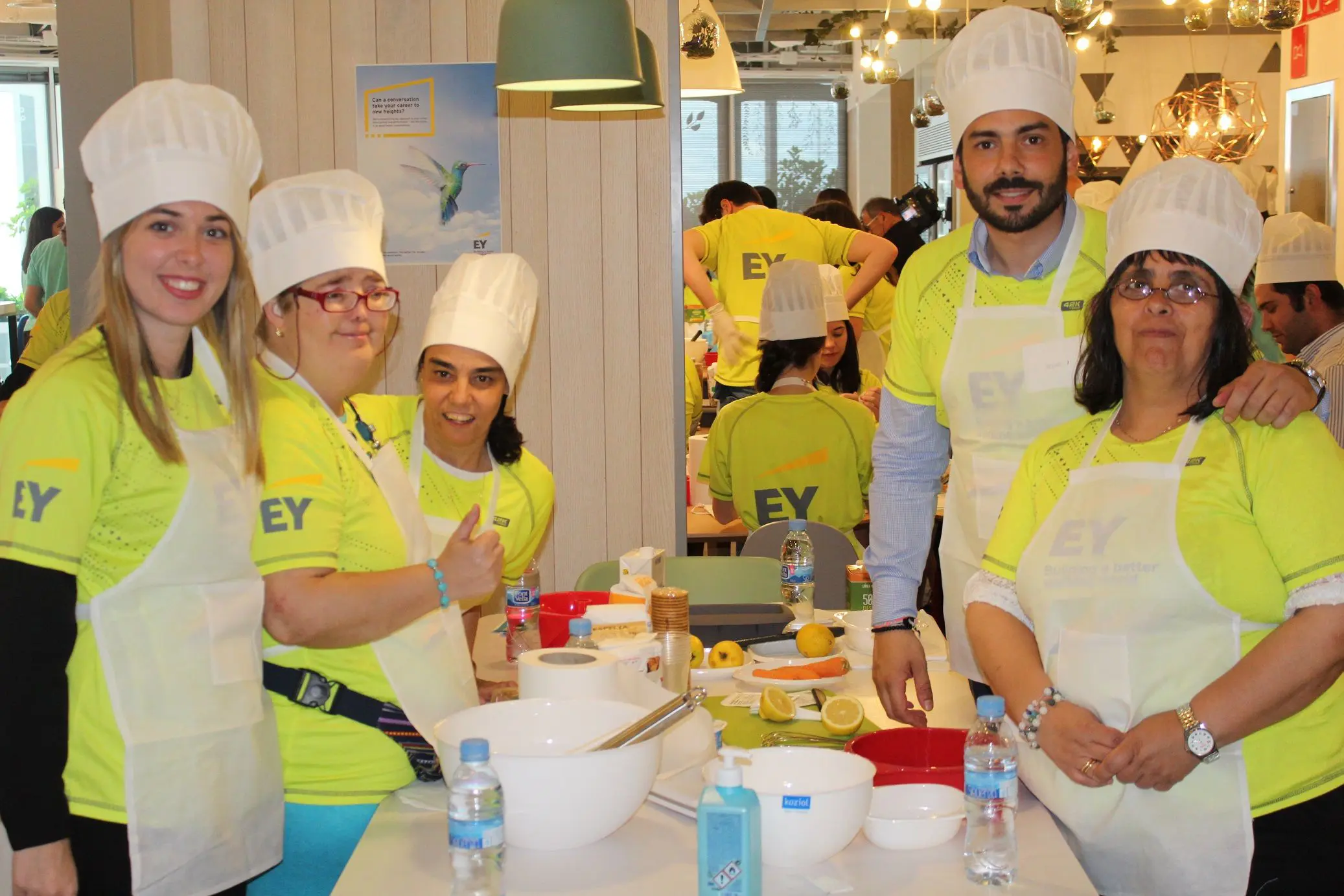 Los beneficiarios, además, han estado en todo momento acompañados por más de 50 voluntarios de EY, que les han ayudado a organizarse y a llevar a cabo con éxito los menús propuestos por los monitores. De esta manera, también se ha promovido el desarrollo de habilidades sociales, trabajando en grupo para la consecución de un objetivo común: la preparación del menú del día.