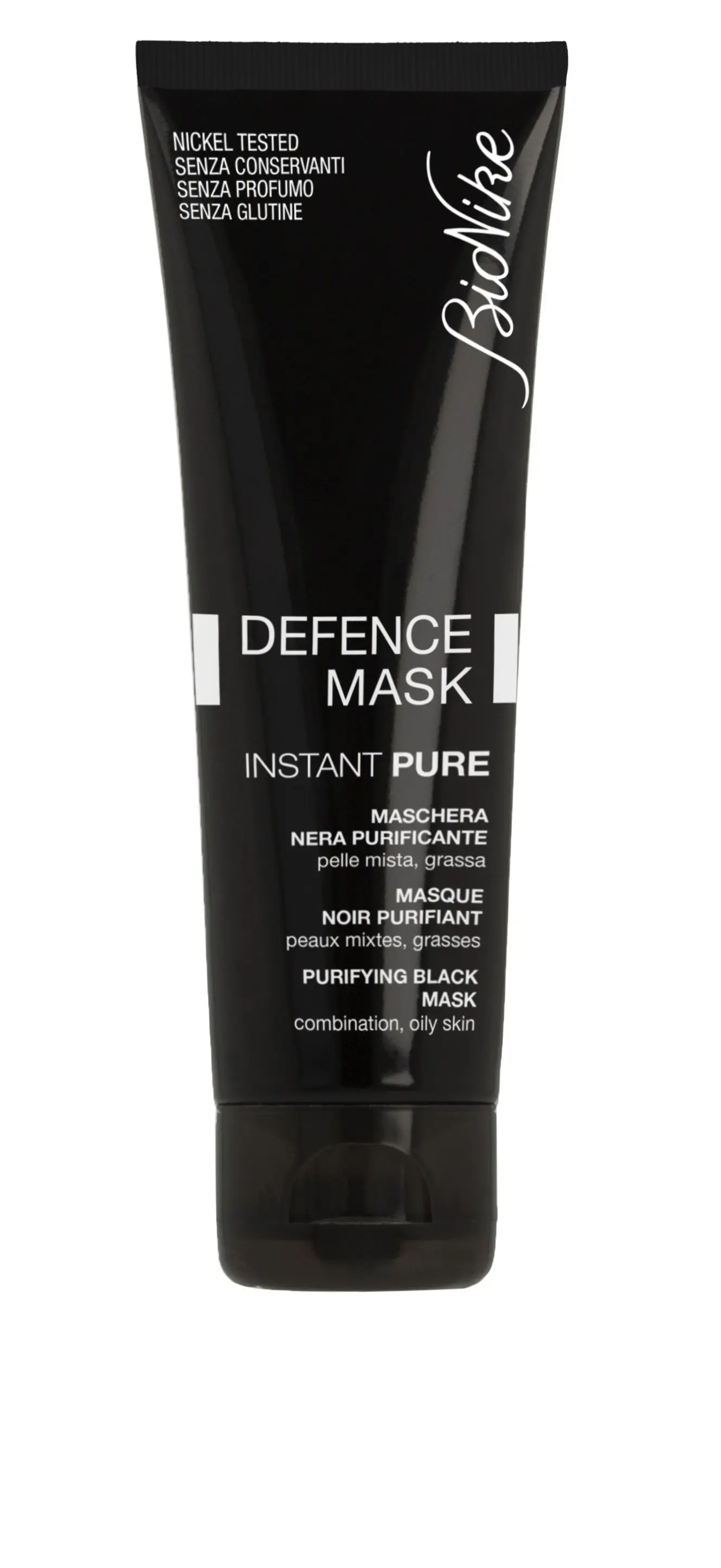 -DEFENCE MASK MASCARILLA NEGRA PURIFICANTE TUBO 75ML: máscara de enjuage formulada con un alta concentración de arcilla y carbón de bambú, con propiedades absorbentes de sebo, para contrarrestar eficazmente el brillo de la piel y ayudar a reducir la dilatación de los poros. Con una textura cremosa, deja la piel purificada y lisa. PVP ( 19,90 €).