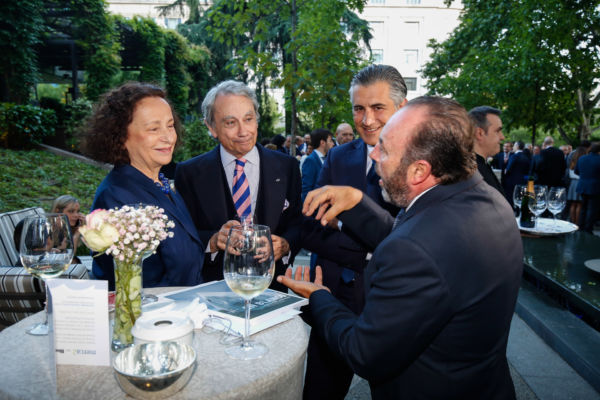 Políticos, empresarios y demás invitados, en el jardín del hotel Villamagna durante los premios de Merca2 con Bloomberg.