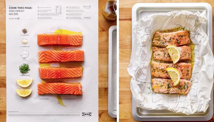 Uno de los inventos más raros de Ikea son las páginas para cocinar, donde encontramos los ingredientes y tenemos que colocarlos igual para cocinarlos en casa. Una idea muy innovadora para probar nuevos platos y comidas en nuestro hogar.
