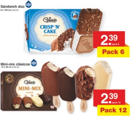 Parece que en Lidl tendremos una nueva sección de helados de chocolate. Este año nos presentan unos sándwiches dúo y un mini-mix clásicos para disfrutar de todo el sabor del chocolate, de los frutos secos y de la vainilla o la nata. Además, por lo que estamos viendo, el precio está bastante bien.