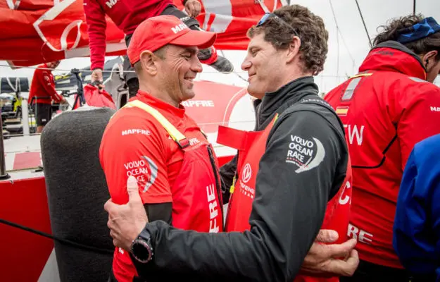 “Seríamos más felices si hubiéramos ganado, pero no podíamos estar más orgullosos”. Algo más que la honra o el orgullo se jugaba esta domingo, cuando tres grandes veleros se jugaban el todo o nada a un sprint una regata que ha durado nueve meses y 48.000 millas náuticas. Esa tarde un barco de bandera china volaba a 16 nudos directo a La Haya, mientras que el español Mapfre iba a 11 pegando trasluchadas desde el norte, eso sí, por delante de su rival el Brunel. Así acababa una de las Volvo Ocean Race más competidas de la historia. El navío armado por la compañía de seguros hizo historia al lograr la segunda plaza, la mejor de un barco español en la historia, por detrás del barco de bandera china