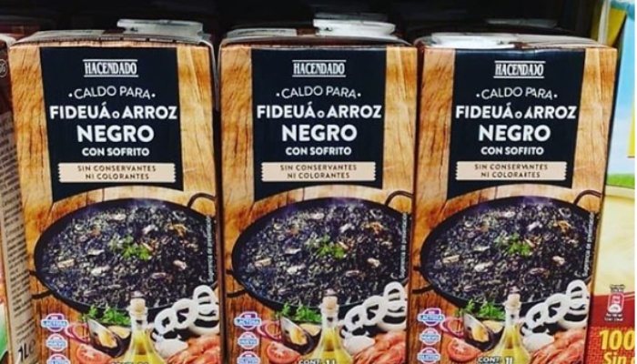 Además, no solo sirve para fideuá. Como pone en la propia caja, también es apto para el arroz negro. No tiene conservantes, ni colorantes, ni gluten, ni lactosa, ni huevo. Vamos, es un caldo apto para todo tipo de dietas. El precio de 1 litro es de 1,95 euros.