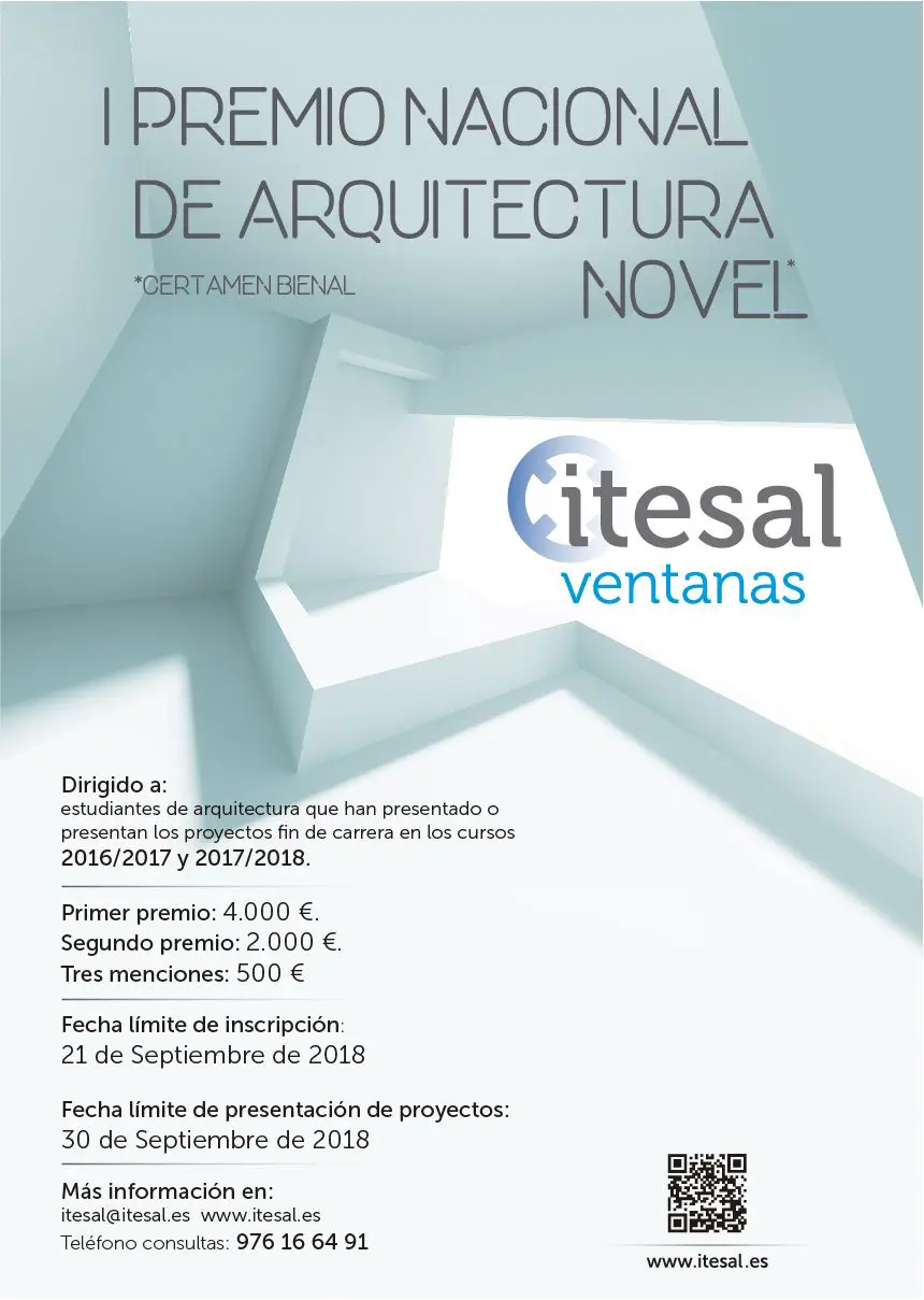 Itesal, empresa aragonesa dedicada al diseño, fabricación y distribución nacional e internacional de sistemas de aluminio para la arquitectura y la industria y líder nacional en la fabricación de perfiles de Rotura de Puente Térmico (RPT), acaba de convocar su primer I Premio Nacional de Arquitectura Novel ITESAL VETECO 2018.