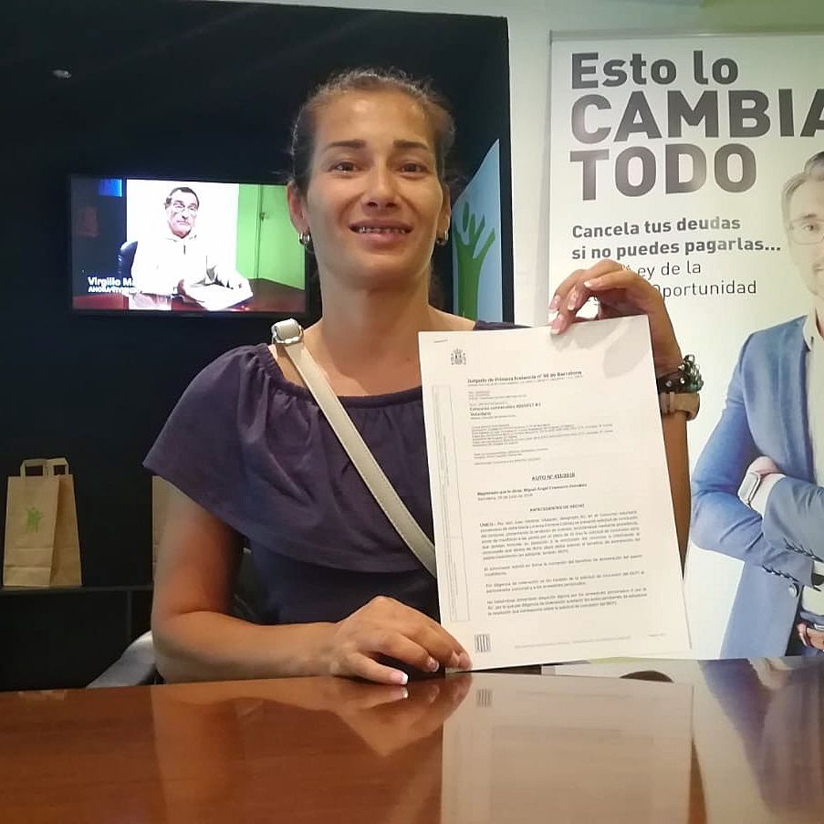 Tras solicitar el BEPI, documento judicial que acredita que las deudas han sido canceladas, el Juzgado de Primera Instancia nº 50 de Barcelona ha aplicado la Ley de Segunda Oportunidad que permite liberar a particulares y autónomos de sus deudas, y ha dictado la exoneración de la totalidad del pasivo insatisfecho. María Lorenza queda libre de este modo de todas sus deudas.