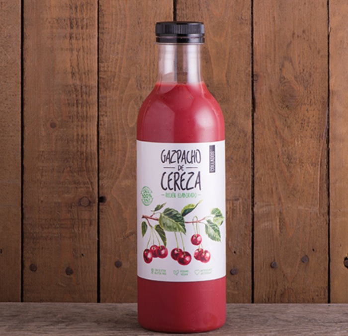 El precio de la botella de gazpacho de cereza es de 2,99 euros y a nosotros nos encanta. Tiene un sabor un poco más dulce y más potente en la boca. Es ideal para combinarlo con una buena ensalada de quesos, sin duda alguna. También está disponible la versión de gazpacho de fresón o de mango, además de los gazpachos clásicos. Nosotros lo recomendamos.