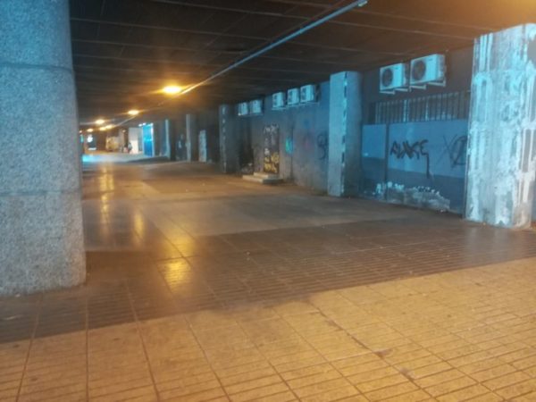 Aceras levantadas, grafitis en las paredes, restos de botellón, cartones a modo de colchón de personas sin techo… Esta es la situación de los bajos de Azca (acrónimo de Asociación Mixta de Compensación de la Manzana A de la Zona Comercial de Paseo de la Castellana). En este entorno se emplazan algunas de las empresas más importantes del Ibex 35, que viven ajenas a esta deplorable imagen. Sacyr o Deloitte, entre otros, conviven con esta situación.