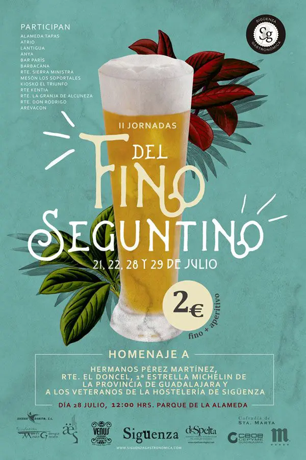 En la II Ruta del Fino Seguntino participan trece bares y restaurantes. En dos fines de semana consecutivos, sábado y domingo, proponen a propios y extraños refrescarse, como hiciera el mismísimo Berlanga, con esta bebida, acompañada de tapa, al precio de dos euros.
