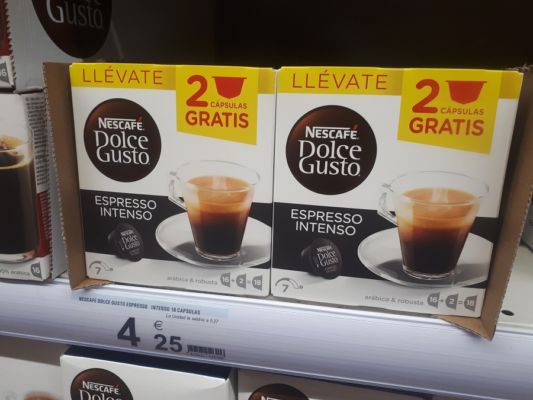 Pues, sorprendentemente, no. Carrefour ha mantenido el precio en la tienda online. La caja de 16 cápsulas de la Dolce Gusto cuesta 4,25 euros tanto en la tienda física como en la tienda online. ¿No es curioso que, siendo el café un producto tan popular, no hayan subido esos 10 céntimos? ¿Qué normativa aplican para hacerlo?