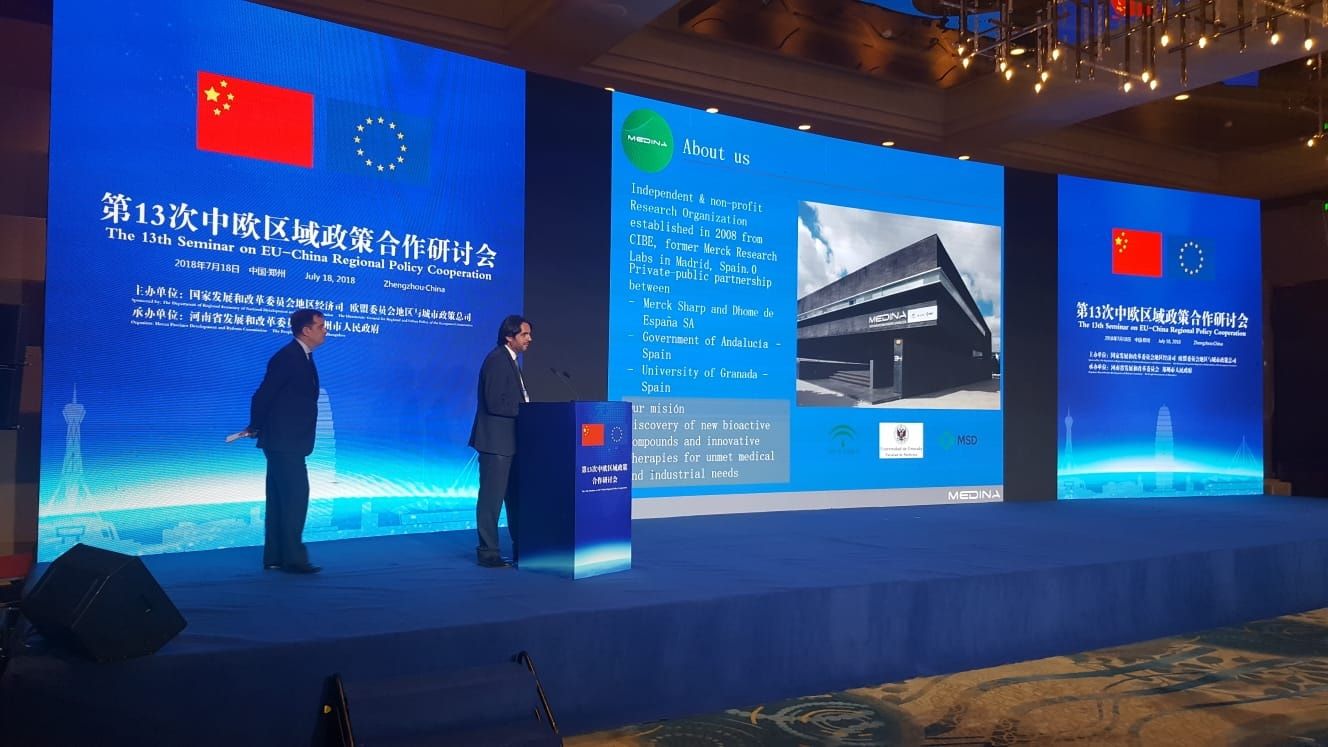 Fundación MEDINA ha participado junto a un equipo compuesto por representantes del Ayuntamiento de Granada y del Parque Tecnológico de Ciencias de la Salud (PTS) en el 13º Seminario sobre Cooperación de Política Regional UE-China, que ha tenido lugar en Zhengzhou, provincia de Henan, China, con el objetivo de fomentar las relaciones institucionales, científicas y económicas de ambas partes.