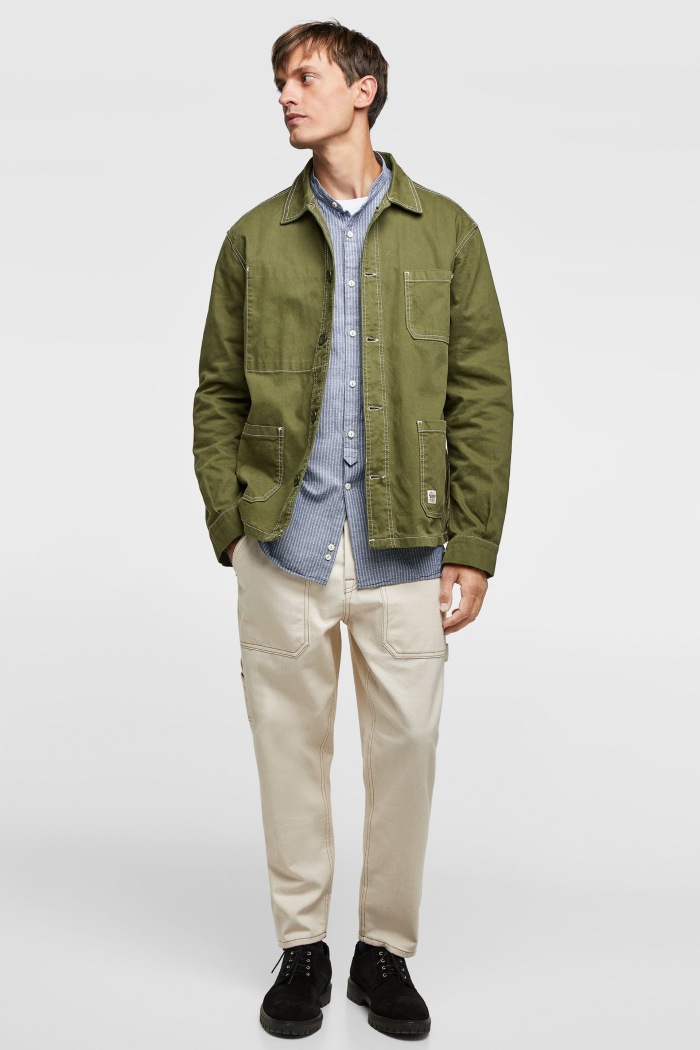 El verde también será uno de los tonos que más veamos en la próxima temporada. Pero no cualquier tonalidad, sino solo las más oscuras. Esta cazadora de corte recto con detalle de pespuntes a contraste de color verde ya está siendo un éxito de ventas. Tiene dos bolsillos frontales y uno a la altura del pecho. Cierre frontal abotonado y puños cerrados.