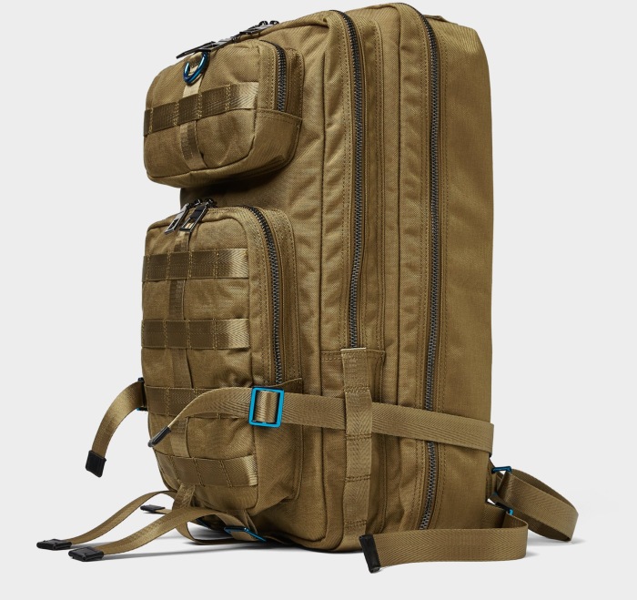 En cuanto a los complementos, Zara ha anunciado que el estilo militar tomará mucha presencia en esta nueva temporada y lo podemos ver aquí reflejado, en esta mochila multiusos de color caqui. Es una copia exacta de las mochilas que usan los militares en las misiones.