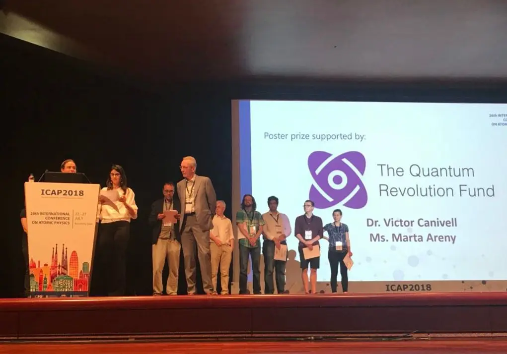 The Quantum Revolution Fund de la mano de sus directores la Sra. Marta Areny y el Dr. Víctor Canivell tuvo el honor de entregar el primer premio al físico Philipp Kunkel de la Universidad de Heidelberg por la mejor defensa de su poster dentro del marco de la conferencia ICAP2018, el encuentro de física atómica más importante del mundo.