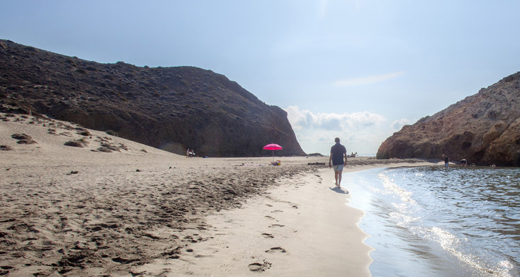 Cuando hayas recorrido la playa de Monsul y estés extasiado por su belleza, puedes seguir descubriendo paraísos cercanos. Si vas hacía la derecha de la playa podrás admirar una duna en movimiento y se vas hacía la izquierda veras un pasaje que da a la cala de Media Luna. Una cala salvaje de agua transparente con cuevas pequeñas para resguardarte del sol. Tus ojos no habrán visto nada tan bonito.