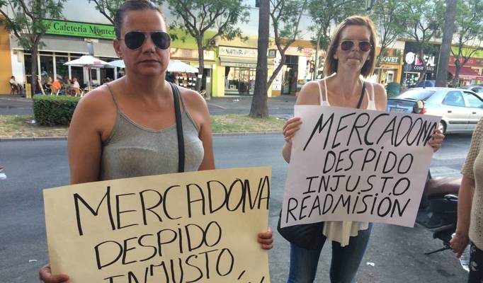 María y Patricia hicieron una jornada de protesta en la puerta de este Mercadona buscando una solución. ¿Cuál fue la respuesta de Mercadona? Declaró los despidos como improcedentes, pero no las readmitieron.