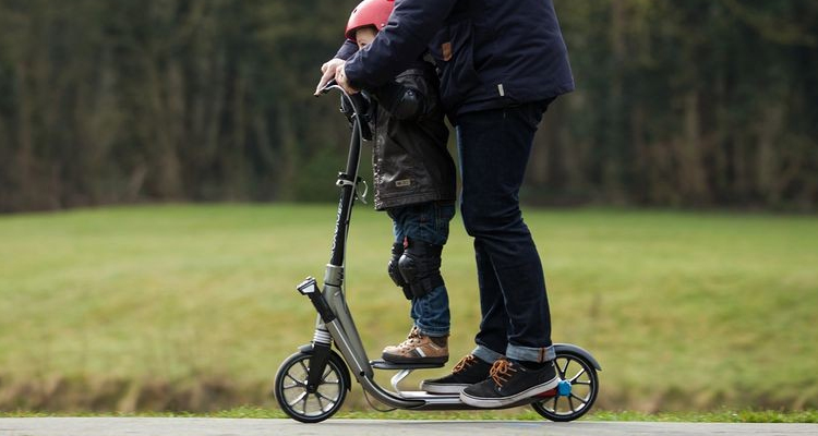 Te habrás fijado si tratas de enseñar a un niño a ir en bicicleta que al principio necesita ayuda. O bien le sujetas tú la bicicleta corriendo a su lado o le pones ruedines. Pues bien, algo parecido pasa cuando quieres enseñar a un niño a ir en patinete o simplemente quieres compartir con él la experiencia.