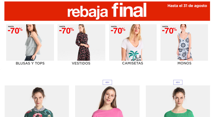 En este caso tenemos hasta 70% de descuento en moda joven ella. Es una categoría de El Corte Inglés donde adolescentes y gente de menor edad encontrará su estilo reflejado en grandes marcas. Y a precios muy económicos en la rebaja final. Es una estupenda opción si tienes pensado renovar vestuario, pero aún no sabes que te pondrás para los siguientes meses. Corre y aprovecha las prendas a menor coste, que luego más tarde te harán falta.