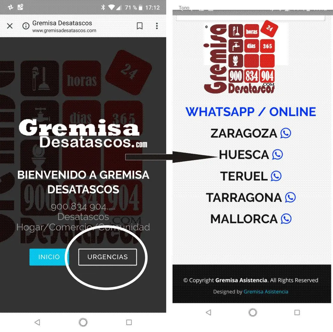 Desde primeros de agosto, Gremisa Asistencia ha puesto en funcionamiento el teléfono único y gratuito 900834904, así como la página web www.900834904.com, donde se puede solicitar en cualquier momento del día o de la noche, el servicio de desatasco para las capitales y provincias de Zaragoza, Huesca, Teruel, Tarragona y Palma de Mallorca.