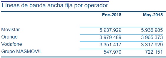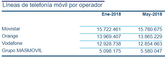 En el segmento móvil, todo se repite. MásMóvil arrasa sin mesura; y Movistar mantiene la cabeza. Aquí, incluso, consigue un saldo positivo de clientes al aumentar su cartera en más de 58.000 altas.
