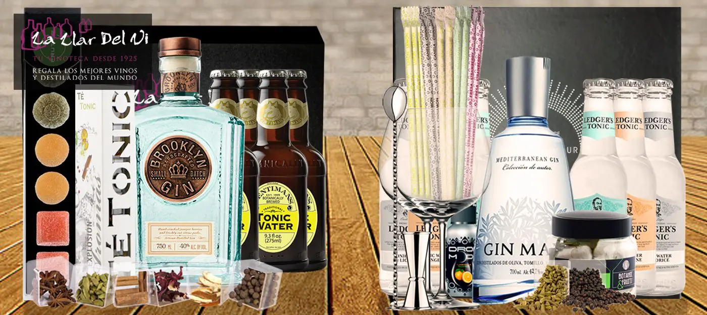 Los regalos especializados con la ginebra como protagonista del experto en regalos La Llar del Vi se componen de una combinación muy dispar de elementos como; botánicos, infusiones, tónicas de distintos aromas y sabores, cañitas comestibles de diferentes sabores, cócteles con fruta deshidratada y botánicos en formatos de monodosis, copas, cucharas trenzadas, medidores y dulces de distintos sabores y texturas.