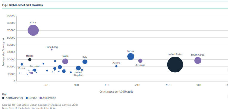 De todos modos, el comportamiento de los ‘outlet’ no es el mismo en todas las regiones del mundo. Por ejemplo, Estados Unidos constituye el mercado más desarrollado, mientras que la región Asia-Pacífico se encuentra todavía en la fase inicial de crecimiento y su oferta de outlets se mantiene en niveles muy reducidos.