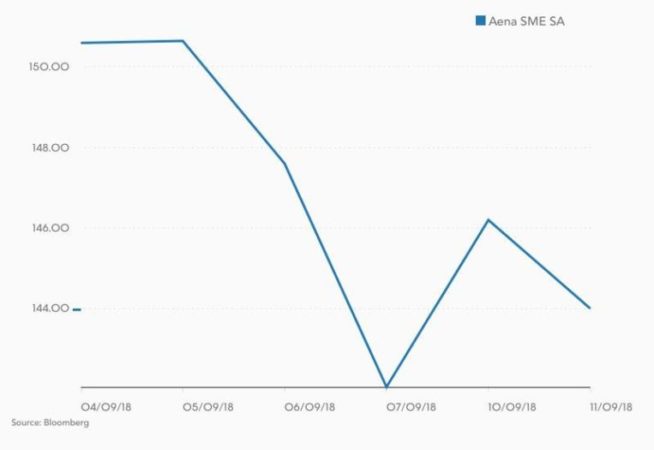 En febrero de 2015, el Gobierno lanzó una Oferta Pública de Venta (OPV) para privatizar el 49% de Aena. Con ello, se ingresó un buen pellizco: 5.000 millones de euros. En su estreno en Bolsa las acciones salieron a un precio de 58 euros. Más de tres años después, el valor de sus títulos se ha multiplicado por 2,5 y cotiza a 145 euros (precio a cierre de mercado el 11 de septiembre). De hecho, llegó incluso a máximos históricos de 180 euros.