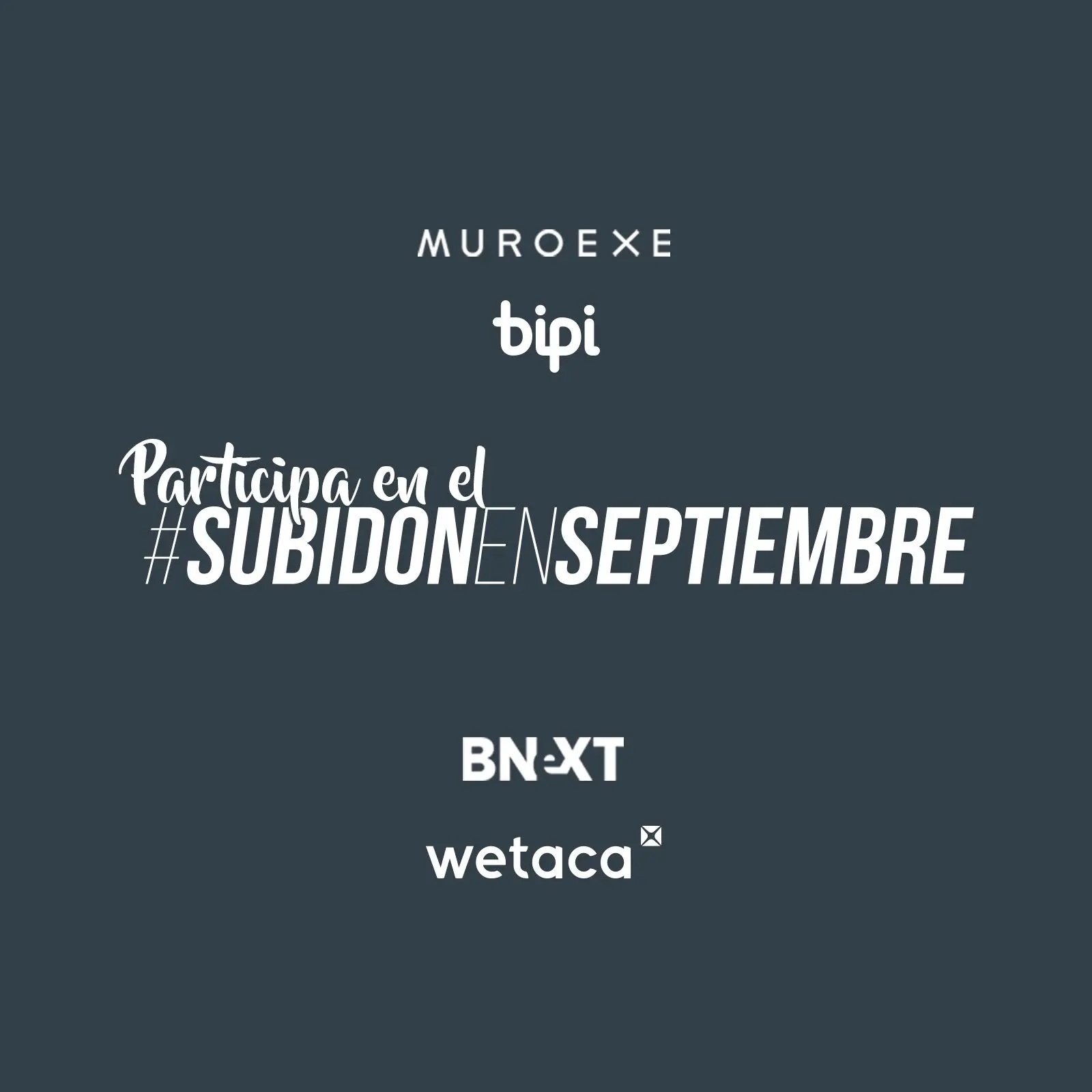 Bnext, el primer marketplace español de productos financieros; Muroexe, expertos en zapatillas de diseño para todos los estilos; Bipi Car, que ofrece la posibilidad de reservar un coche por días o suscribirse a diferentes planes mensuales con todo incluido; y Wetaca, una innovadora propuesta que ofrece tuppers cocinados por chefs a domicilio, se han unido para el lanzamiento de #SubidónEnSeptiembre, una iniciativa que pretende transmitir energía positiva y levantar el ánimo de aquellas personas que aún se encuentran en proceso de superar el final de las vacaciones de verano.