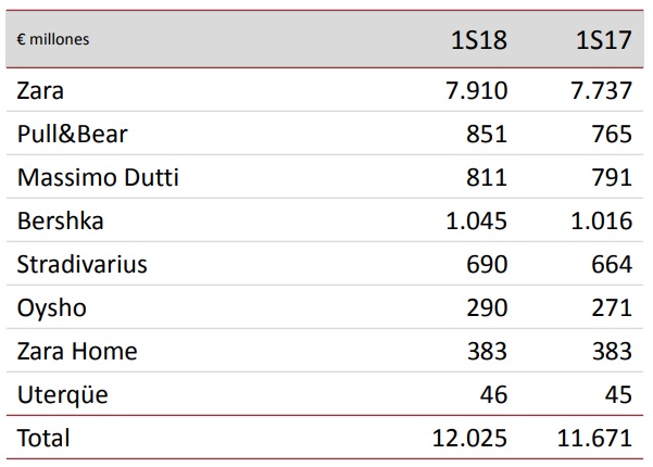 Por primera vez, las ventas de Inditex crecieron por encima de los 12.000 millones de euros en un semestre. Concretamente alcanzaron los 12.025 millones de euros, lo que supone un incremento del 3%, con crecimientos en todas las áreas geográficas.