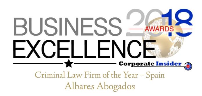 El Bufete Albares Abogados, que dirige el Abogado de Manises, Pedro Albares, especialista en Derecho Penal y Civil, reconocido de nuevo internacionalmente en los prestigiosos Business Excellence Awards 2108 de Corporate Insider, como mejor despacho de abogados de Derecho Penal en España