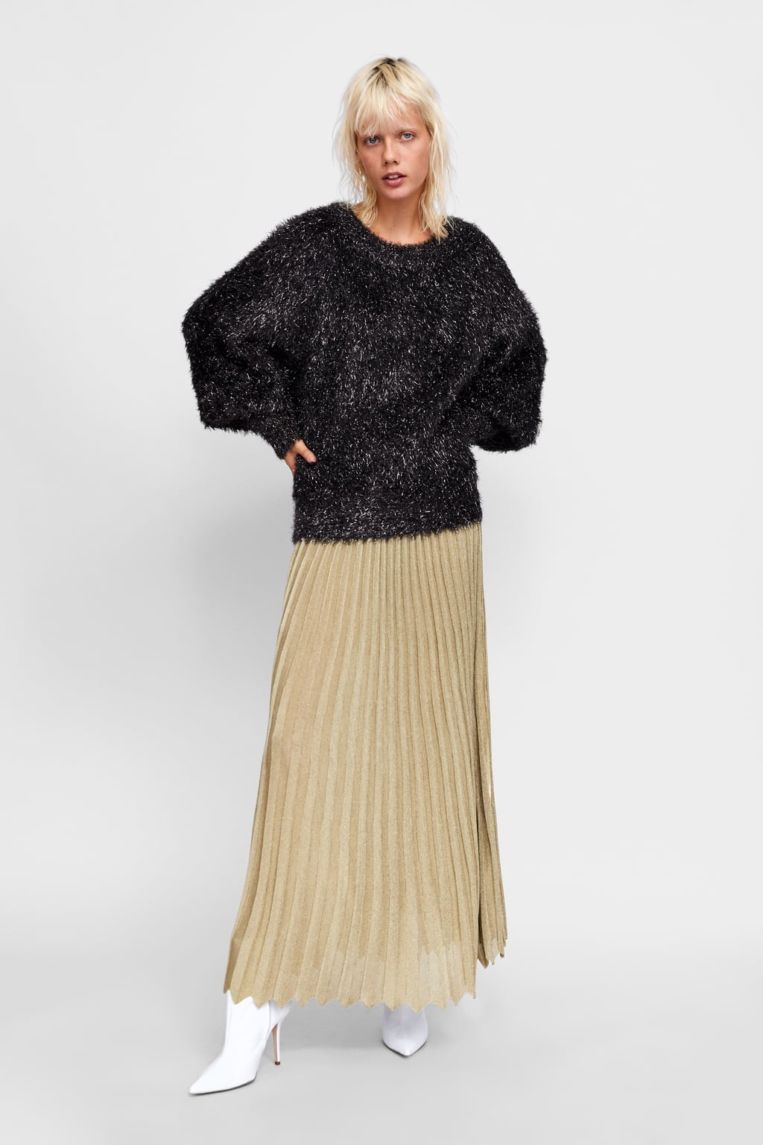 Zara ha decidido sacar a la venta en esta colección de otoño algunas prendas en edición limitada, es decir, prendas de las que han hecho pocas unidades. Esta falda plisada de hilo metalizado es una de esas ediciones limitadas así que, si te gusta, corre a por ella. Se agotará muy pronto.
