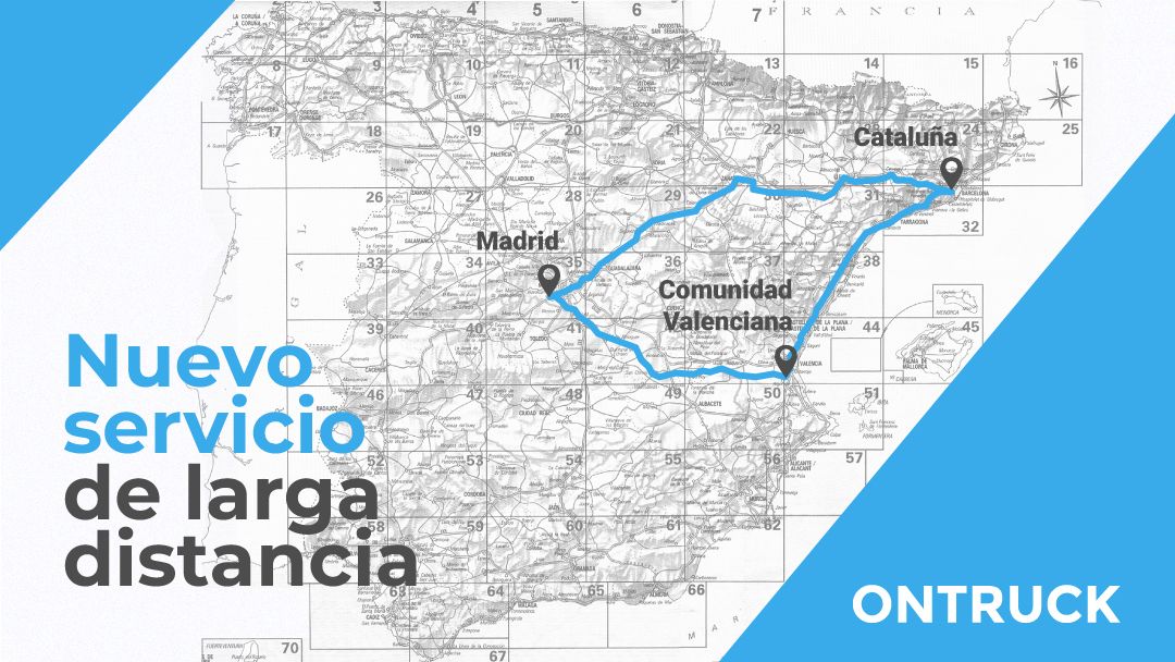 Ontruck, empresa española especializada en transporte regional de mercancías por carretera, ha puesto en marcha su nuevo servicio de larga distancia para dar cobertura a los trayectos que unen la Comunidad de Madrid (y poblaciones limítrofes), Cataluña y Comunidad Valenciana. El proyecto piloto se inició el pasado mes de mayo y ha obtenido unos resultados muy satisfactorios, duplicando el número de cargas mes a mes.